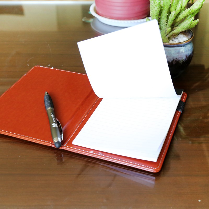 内芯:115*180mm,70g40张 白纸1C线条印刷,每张有可撕线,底部有500g灰板,顶部上胶,顶部黑色特种纸包背,直角