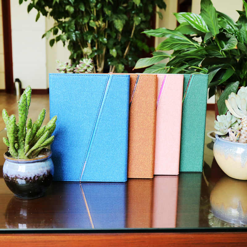 封面:两种材料拼接,封面有手机袋,硬面1.5mm灰板,有磁扣盖,四周车线,圆角。